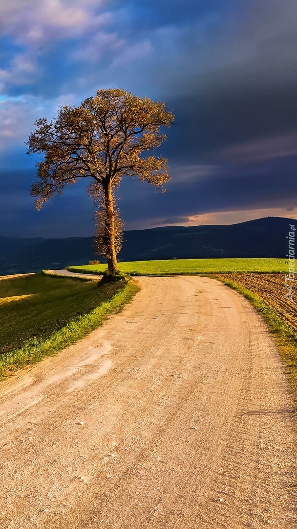 Edytor tapety: Samotne drzewo przy polnej drodze