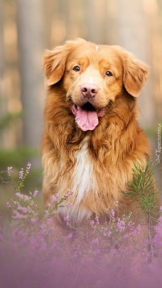 Edytor tapety: Retriever z Nowej Szkocji wśród wrzosów
