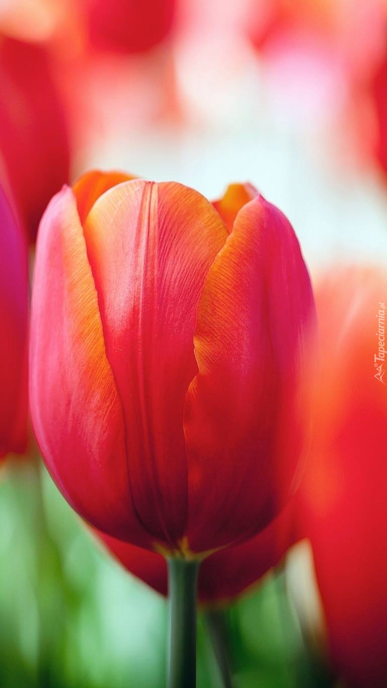 Edytor tapety: Czerwony tulipan na rozmytym tle