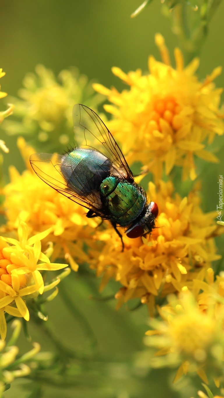Edytor tapety: Kolorowa mucha na żółtych kwiatach