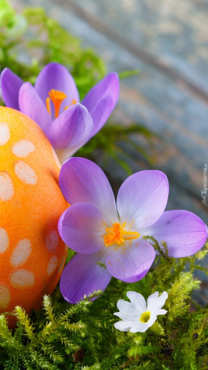 Edytor tapety: Pisanka i fioletowe krokusy