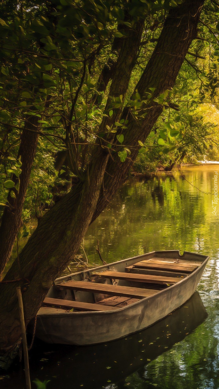 Edytor tapety: Łódź zacumowana przy drzewie