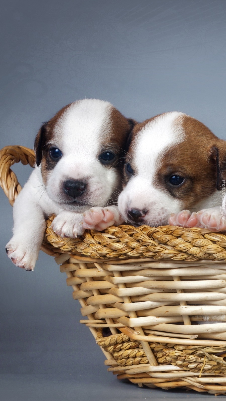 Edytor tapety: Szczeniaki wyglądające z kosza