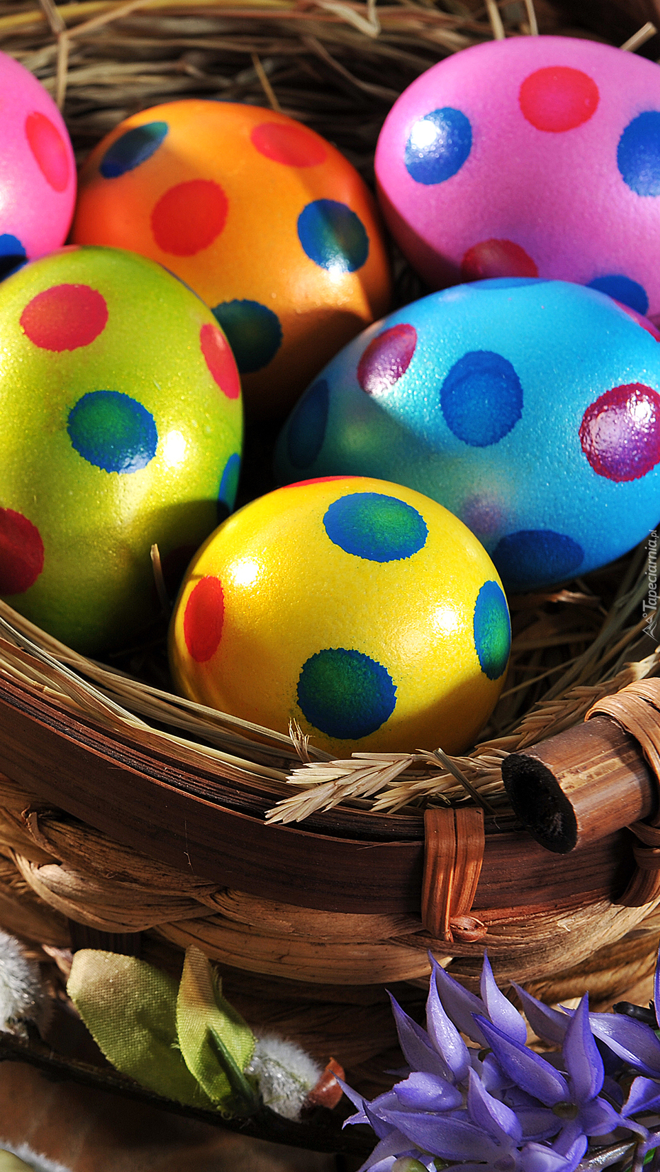 Edytor tapety: Kolorowe wielkanocne pisanki w koszyku