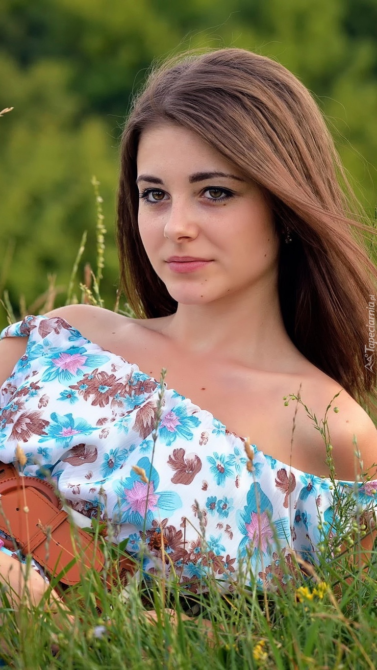 Edytor tapety: Długowłosa szatynka na łące