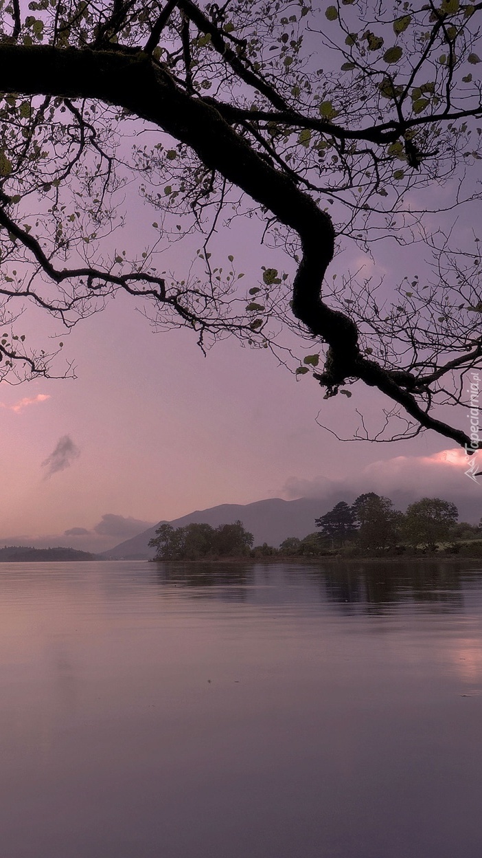 Edytor tapety: Jezioro i góry o wschodzie słońca