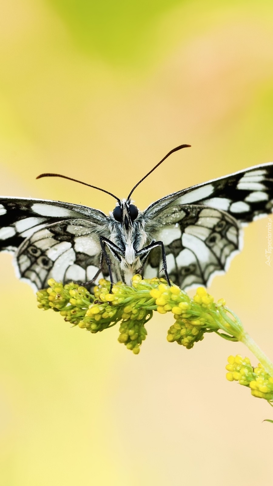 Edytor tapety: Polowiec szachownica na żółtym kwiatku