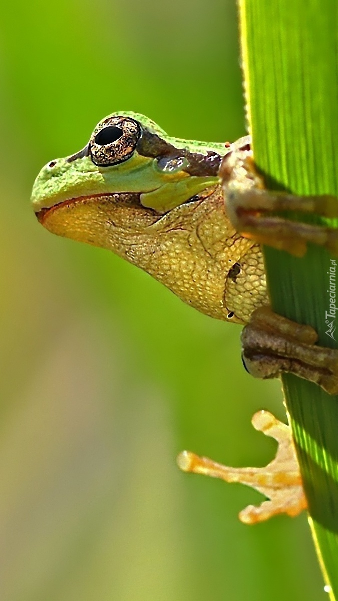 Edytor tapety: Żaba na zielonym liściu