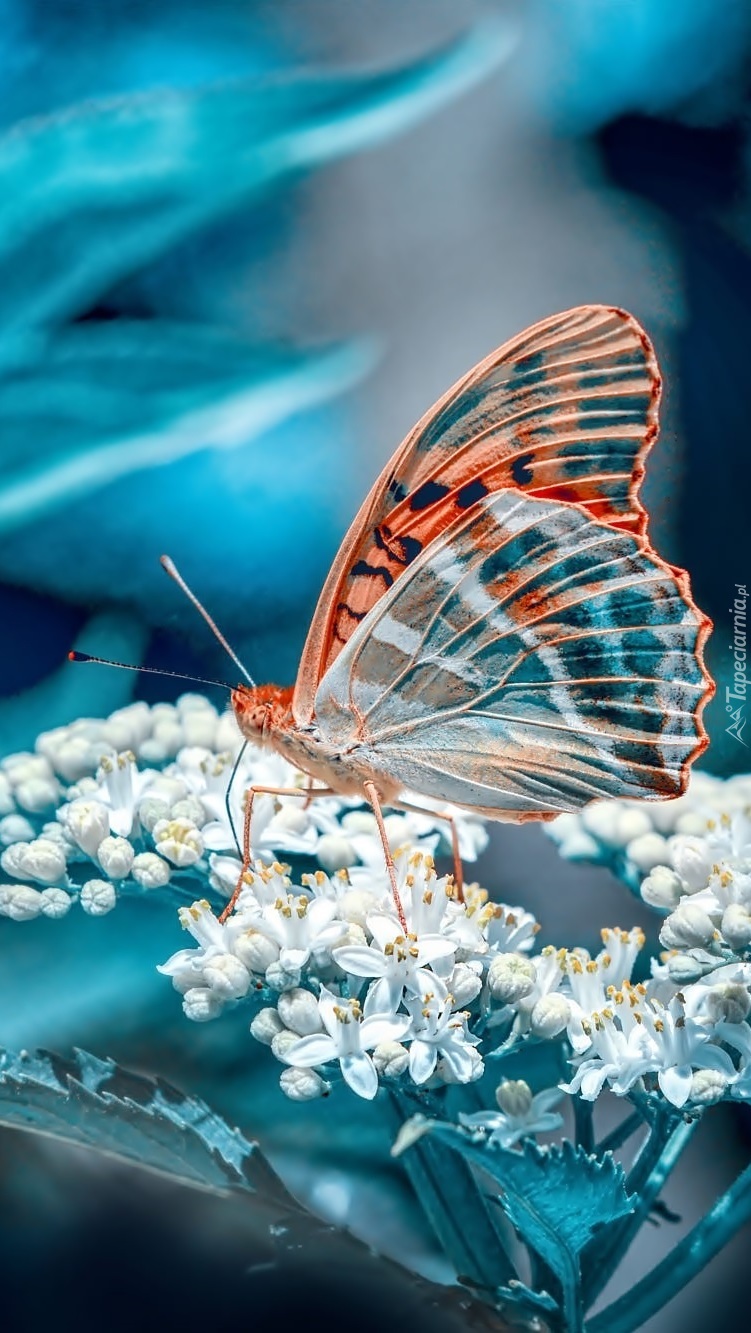 Edytor tapety: Motyl na białych kwiatach