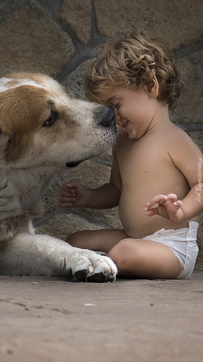 Edytor tapety: Dziecko i owczarek środkowoazjatycki