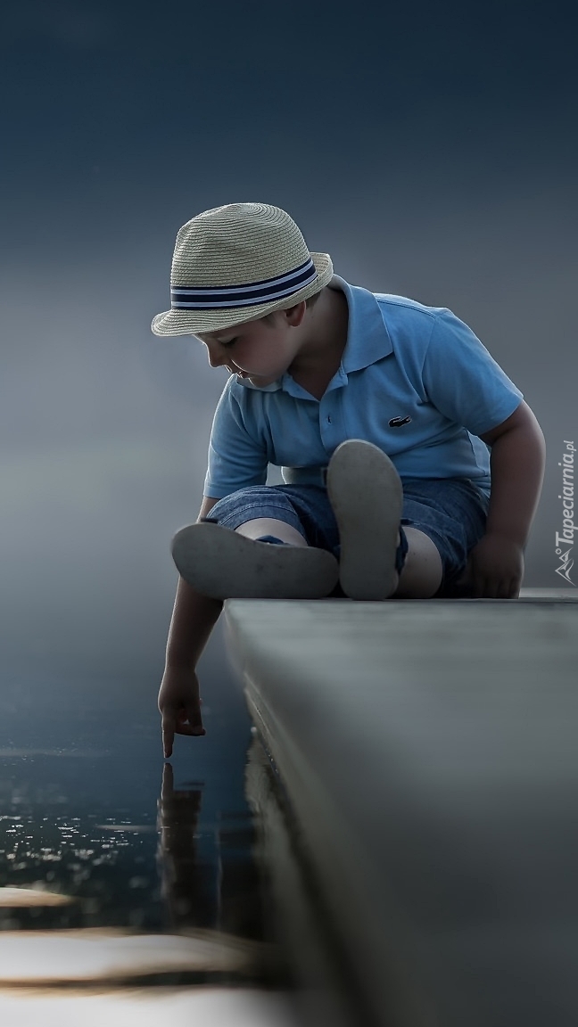 Edytor tapety: Chłopiec siedzący na rampie nad wodą
