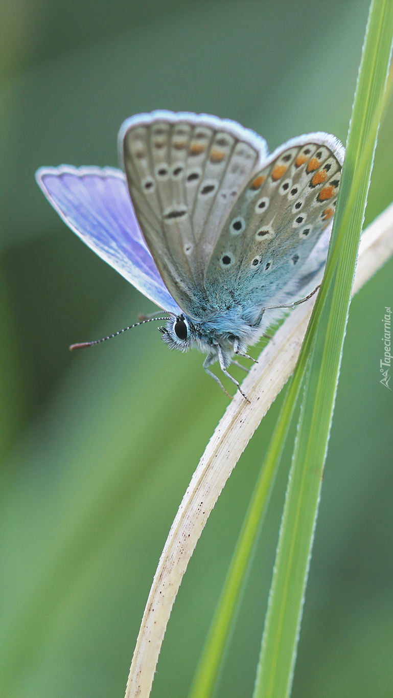 Edytor tapety: Modraszek ikar na źdźble trawy