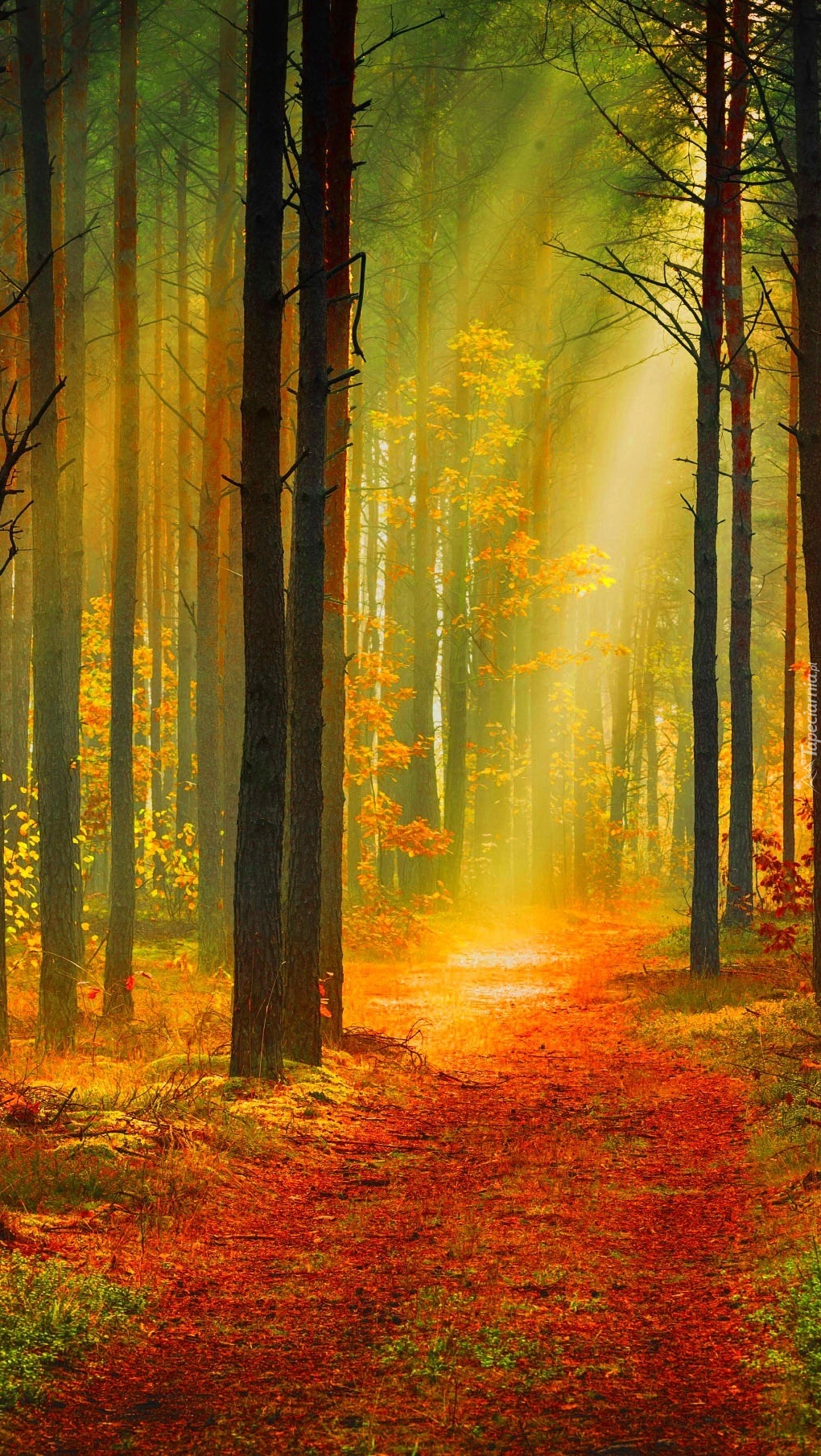 Edytor tapety: Promienie słońca na jesiennej ścieżce