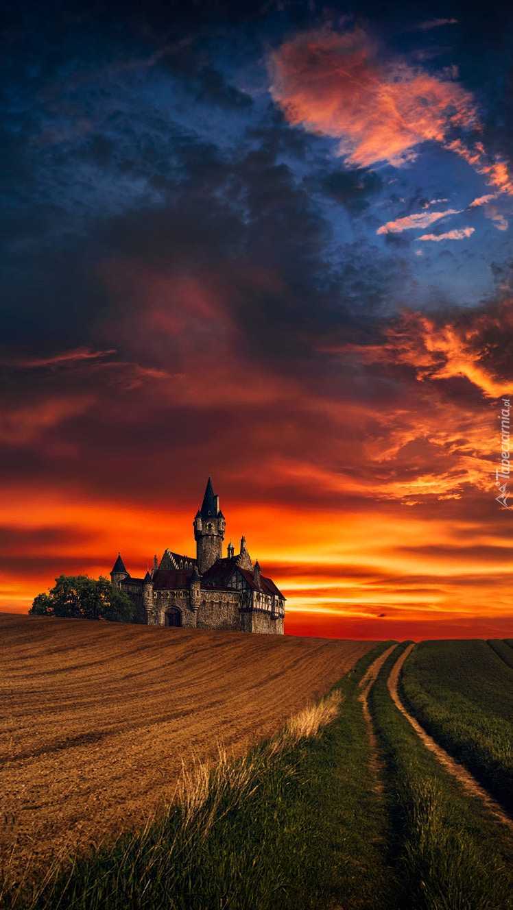 Edytor tapety: Zachodzące nad zamkiem słońce