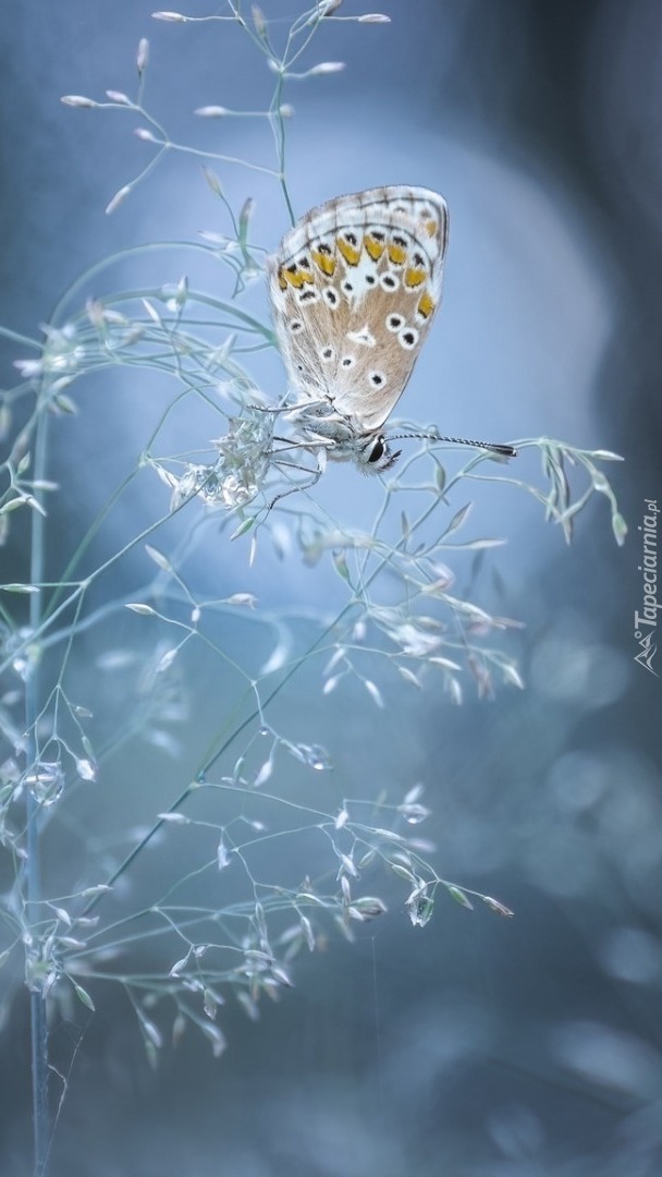 Edytor tapety: Motylek huśtający się na źdźble trawy