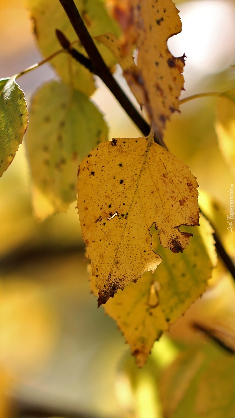 Edytor tapety: Gałązka z żółtymi liśćmi