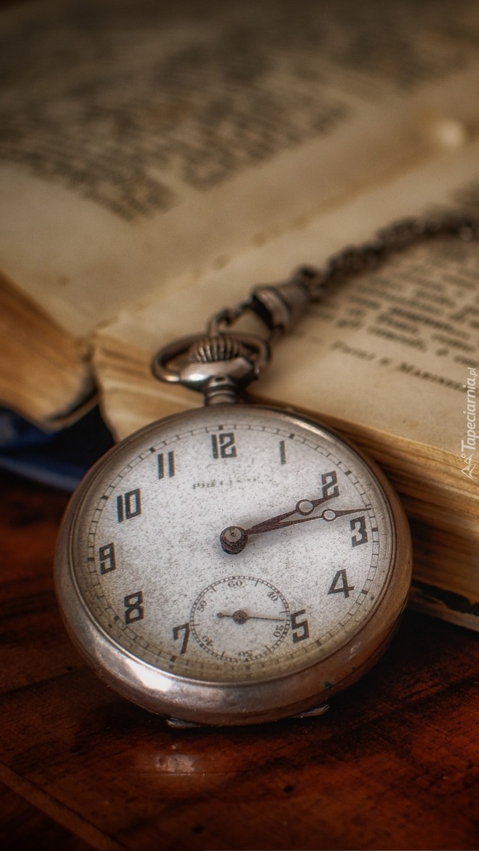 Edytor tapety: Zegarek kieszonkowy obok książki