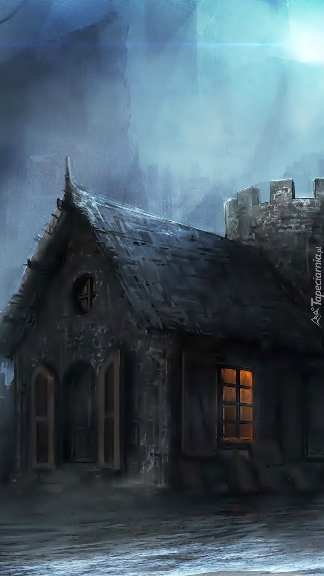 Edytor tapety: Dom pod zamkiem nocą
