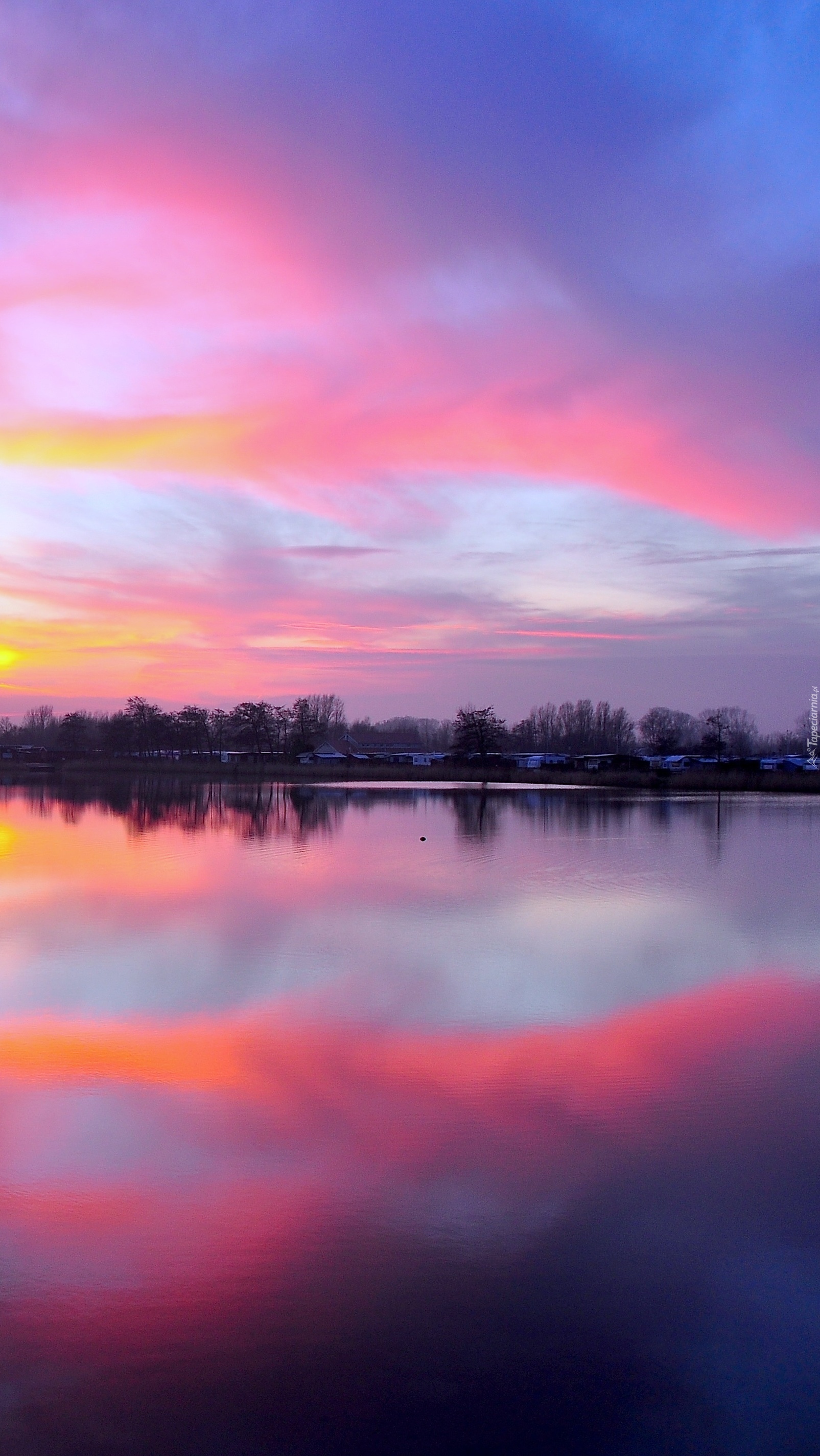Edytor tapety: Kolorowe niebo nad jeziorem