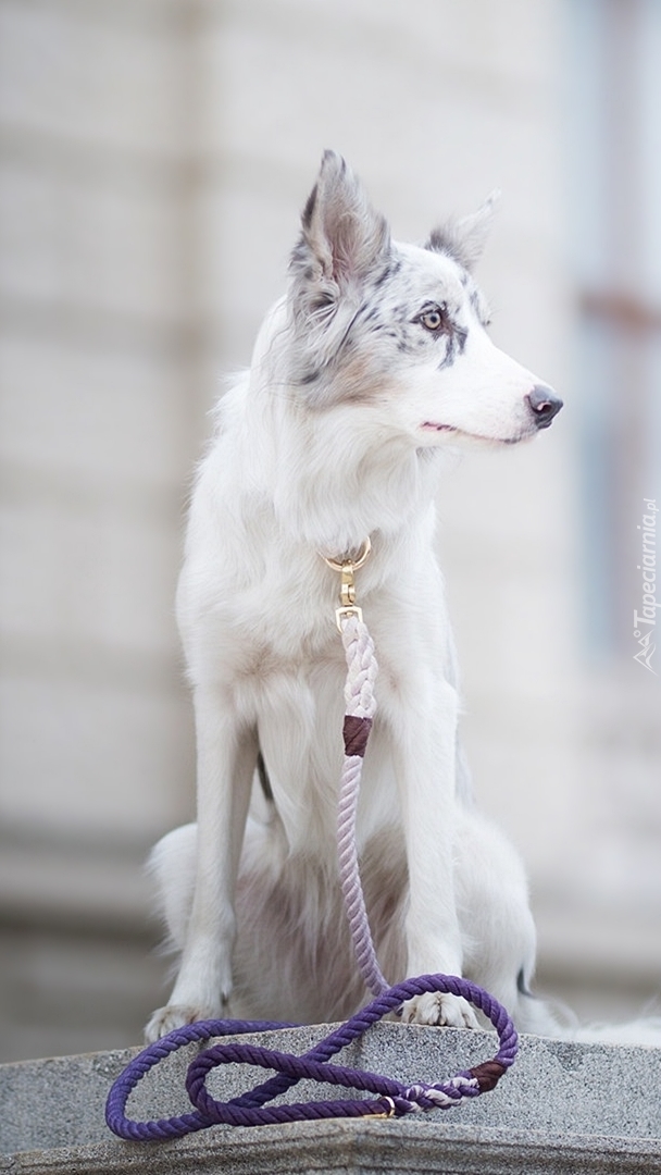 Edytor tapety: Border collie z smyczą na murku