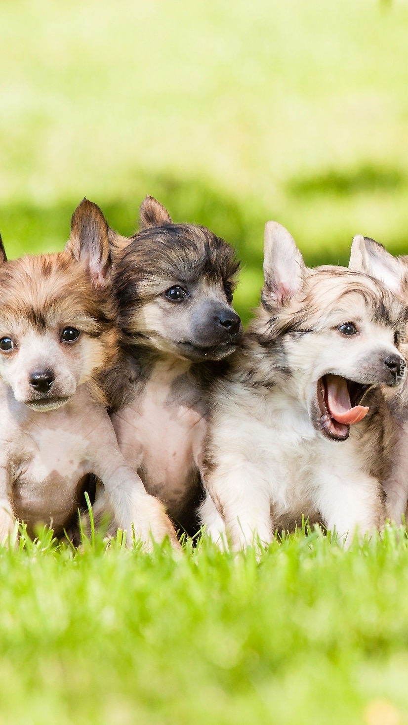 Edytor tapety: Trzy szczeniaki na trawie