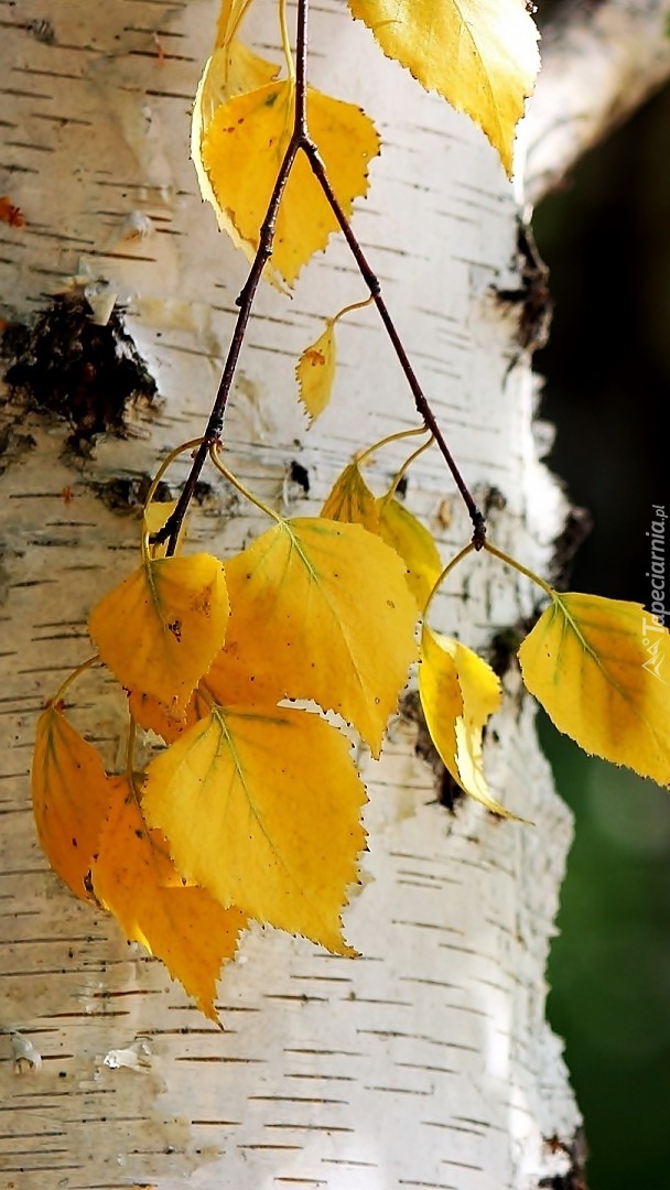 Edytor tapety: Wisząca gałązka jesiennej brzozy