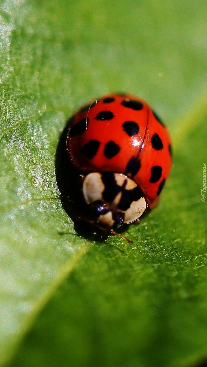 Edytor tapety: Biedronka na liściu