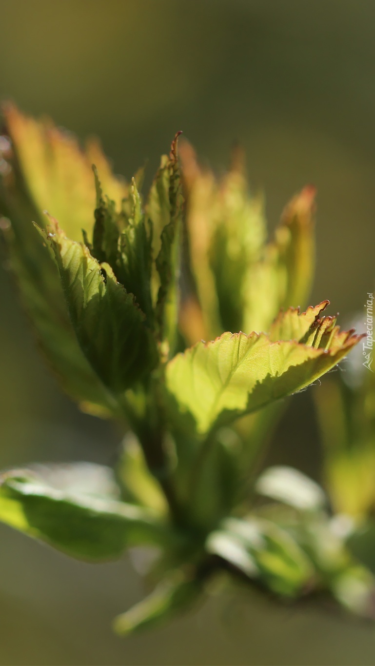 Edytor tapety: Zielone liście na wiosennej gałązce