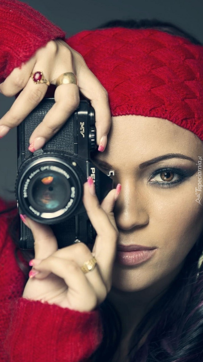 Edytor tapety: Dziewczyna w czapce z aparatem