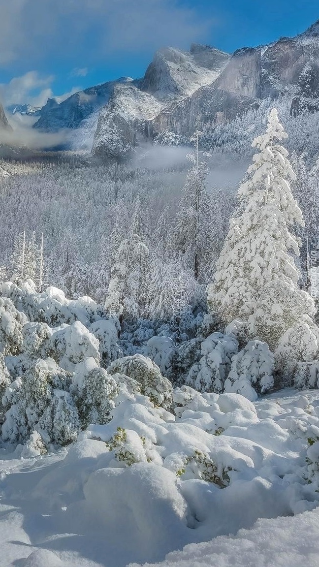 Edytor tapety: Las i góry w śniegu