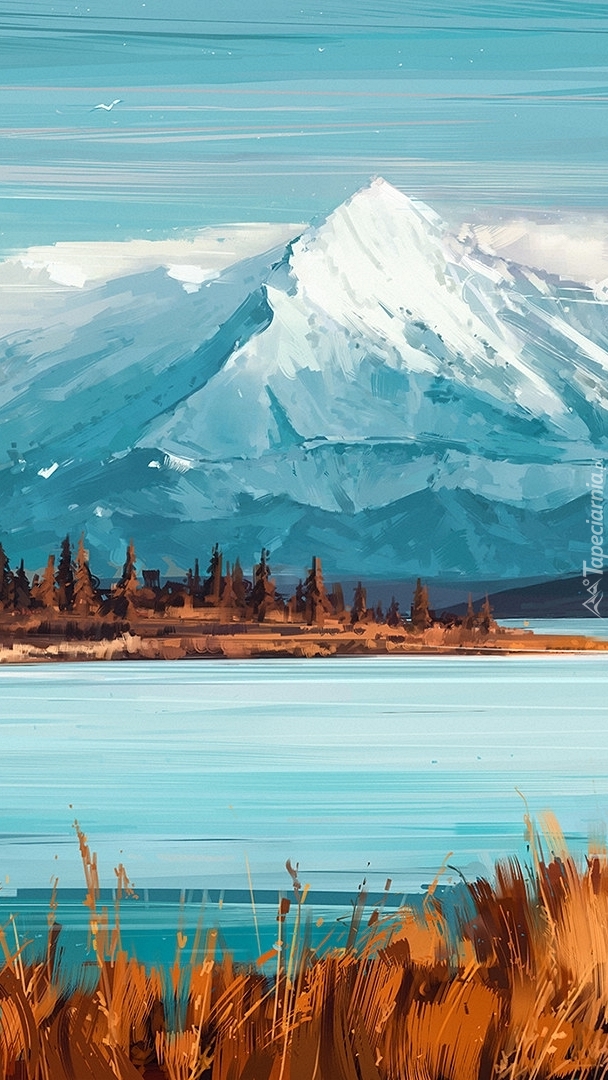 Edytor tapety: Góry i jezioro w paintography