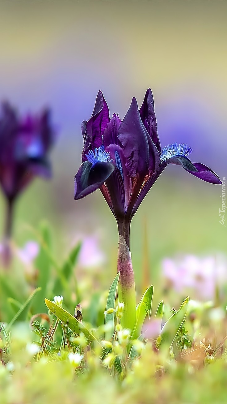 Edytor tapety: Fioletowy irys między roślinkami