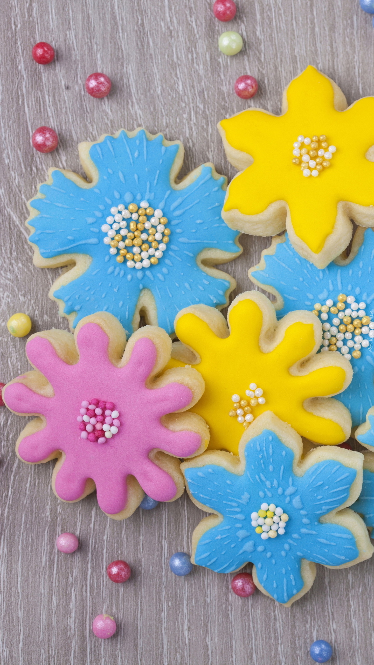 Edytor tapety: Kolorowe ciasteczka w kształcie kwiatów