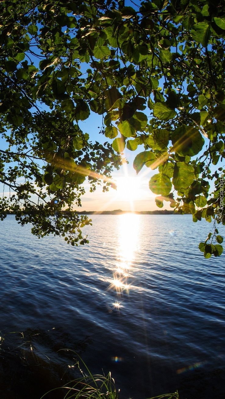 Edytor tapety: Wschód słońca nad jeziorem