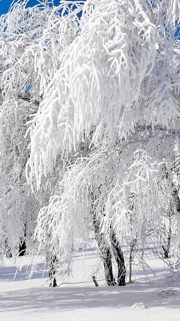 Edytor tapety: Zimowe białe ośnieżone drzewa