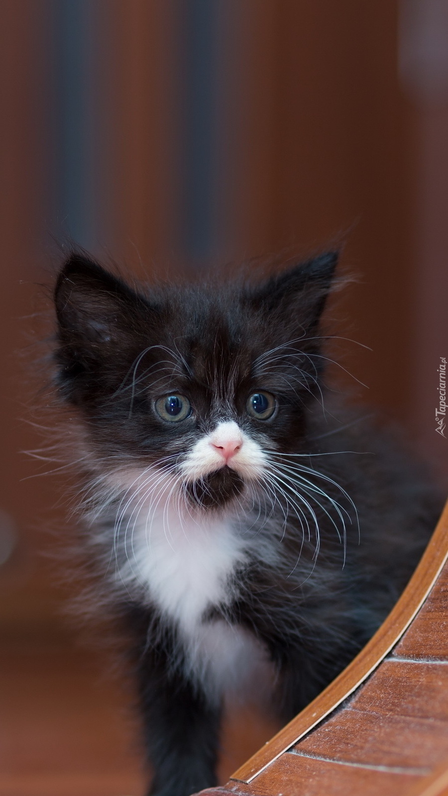 Edytor tapety: Śliczny czarno-biały kociak