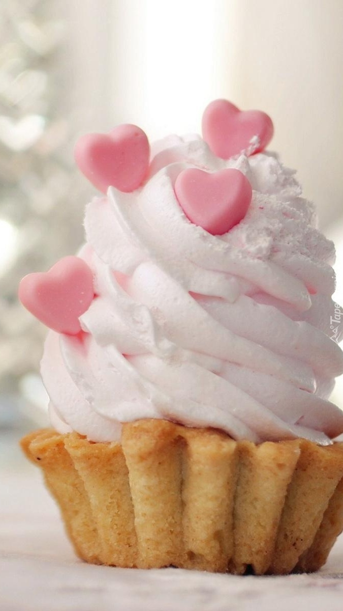 Edytor tapety: Kremowe babeczki udekorowane serduszkami