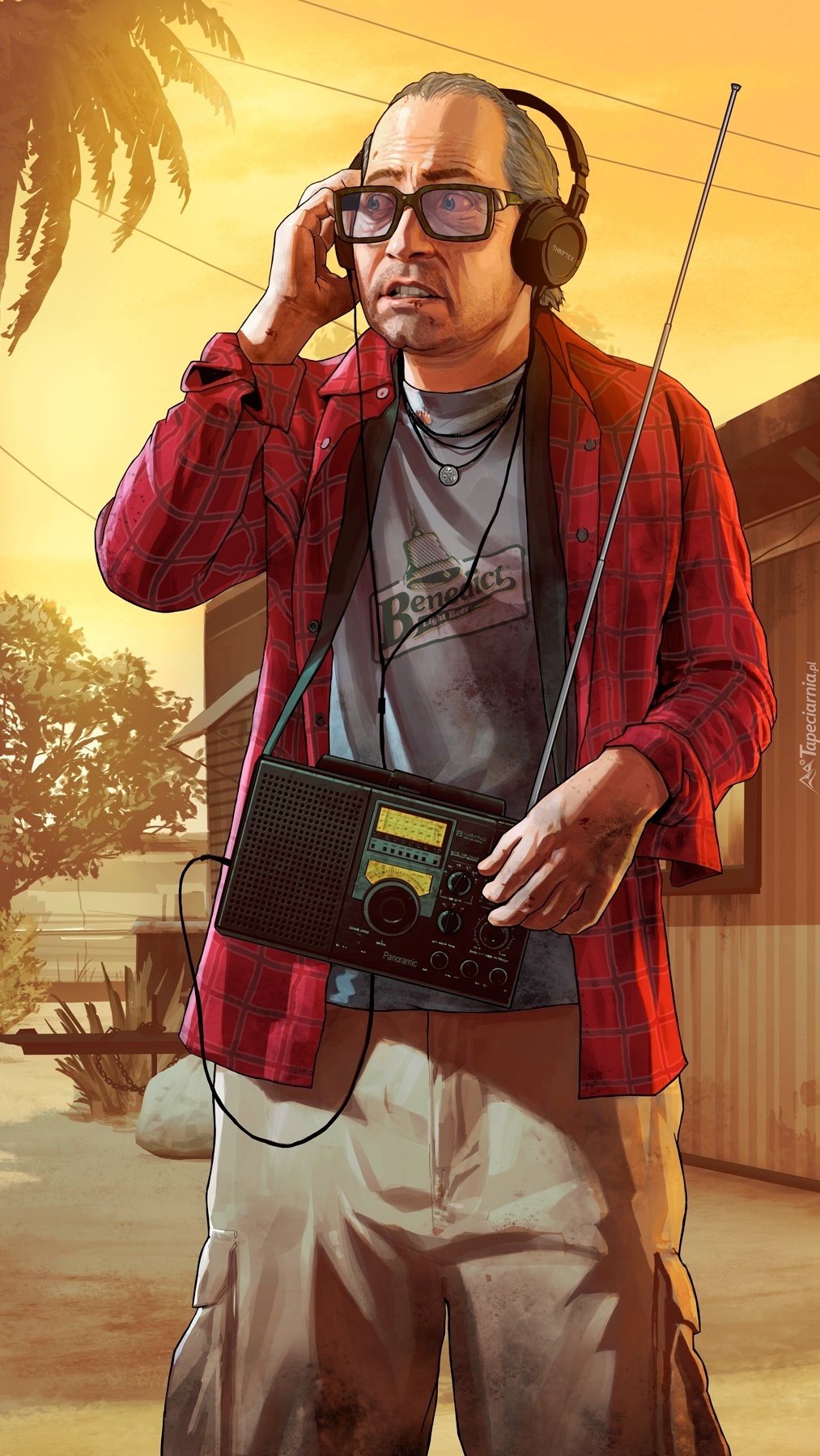 Edytor tapety: Mężczyzna z radiem i słuchawkami