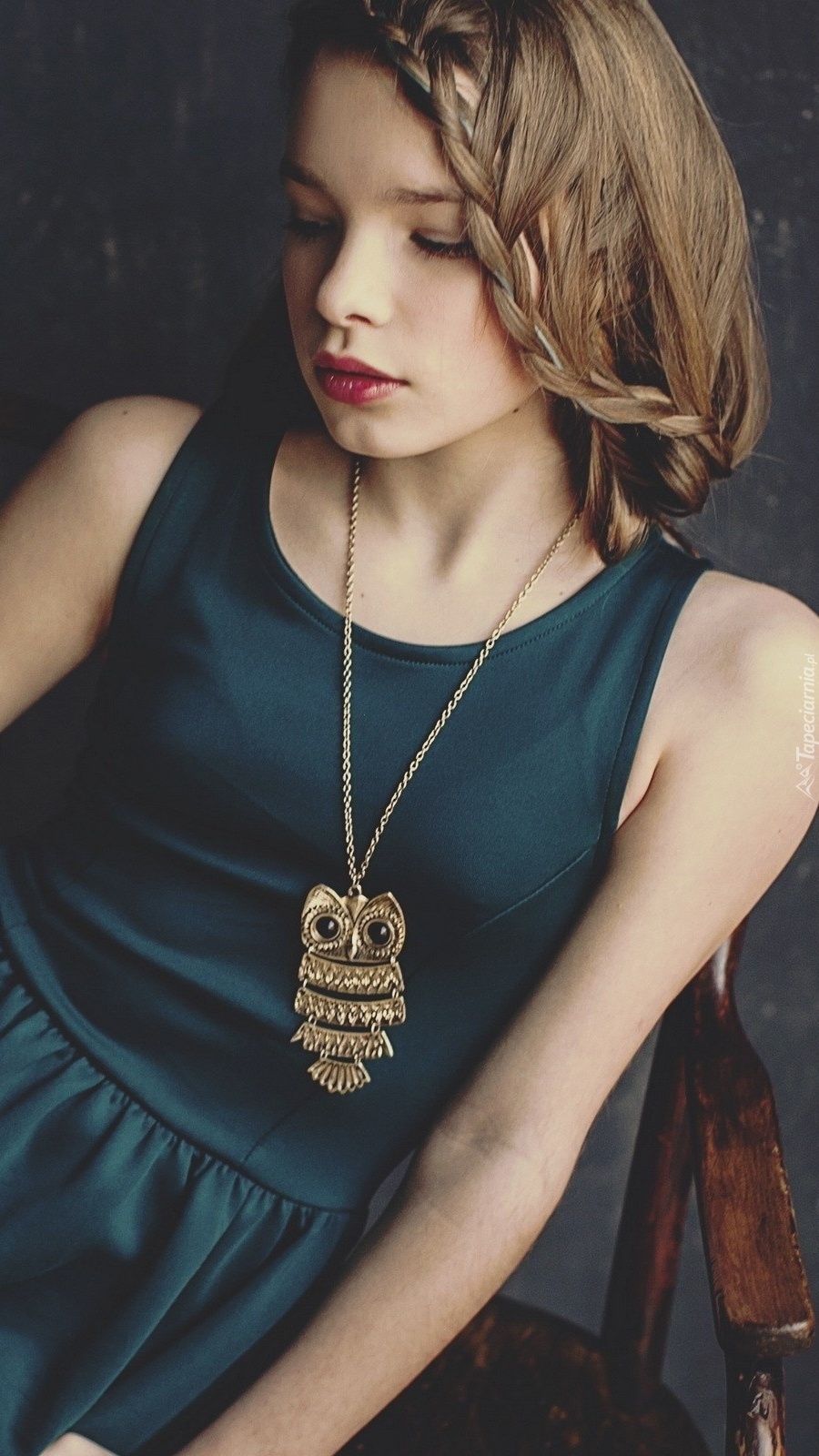 Edytor tapety: Dziewczyna w naszyjniku z wizerunkiem sowy
