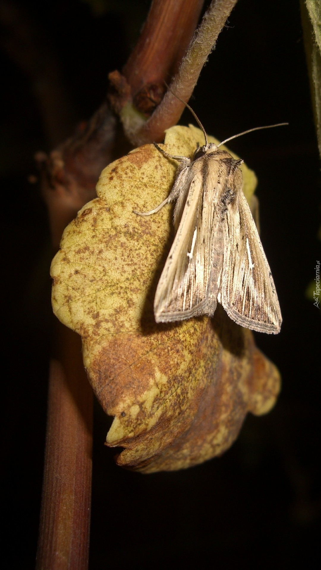 Edytor tapety: Ćma na liściu winogrona