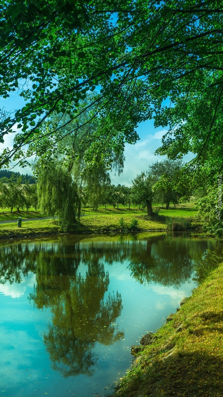 Edytor tapety: Parkowa rzeka i drzewa