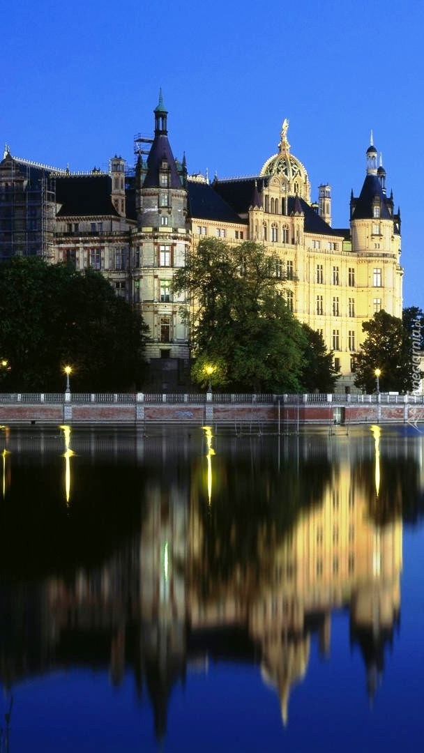 Edytor tapety: Zamek Schwerin nad rzeką w Niemczech