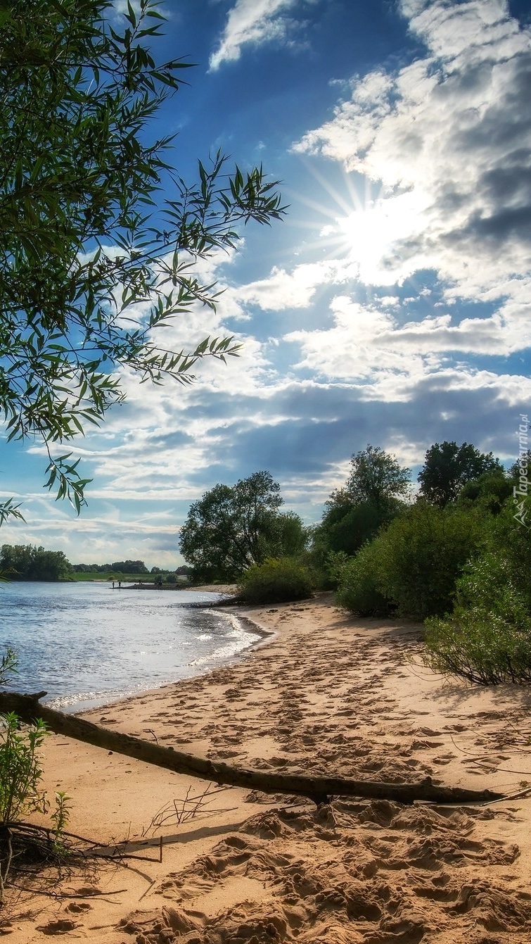 Edytor tapety: Ślady na piasku przy rzece