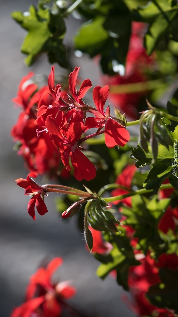 Edytor tapety: Kwitnące pelargonie o czerwonej barwie