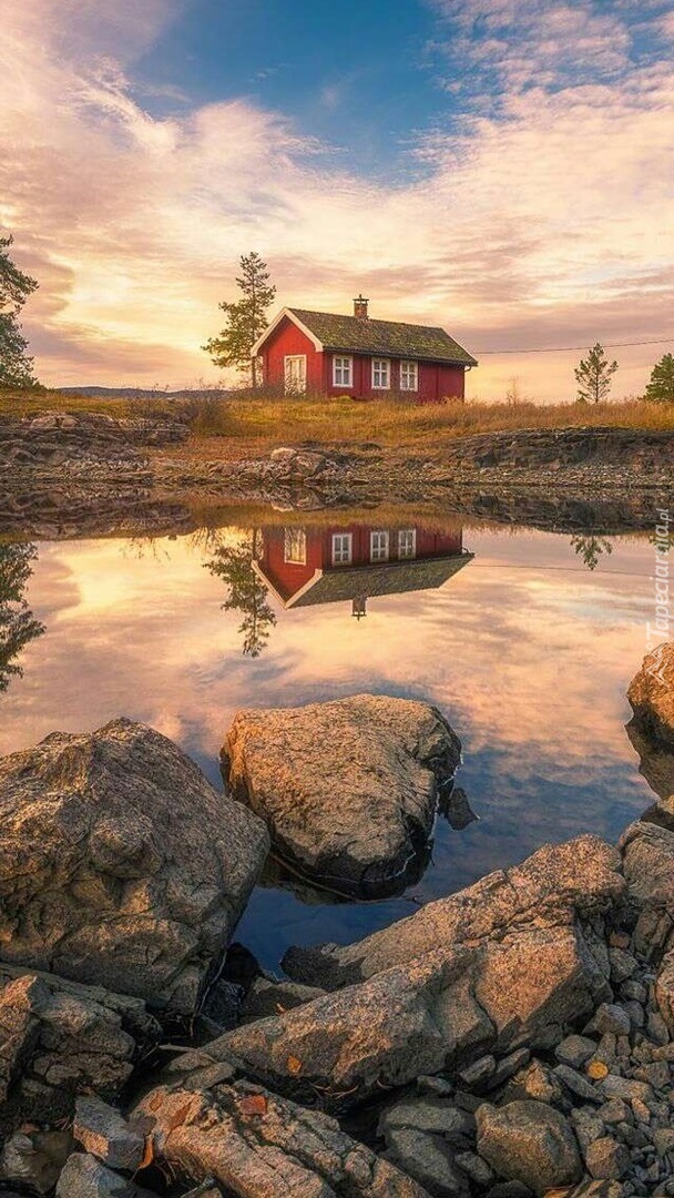 Edytor tapety: Mały domek nad norweskim jeziorem Vaeleren