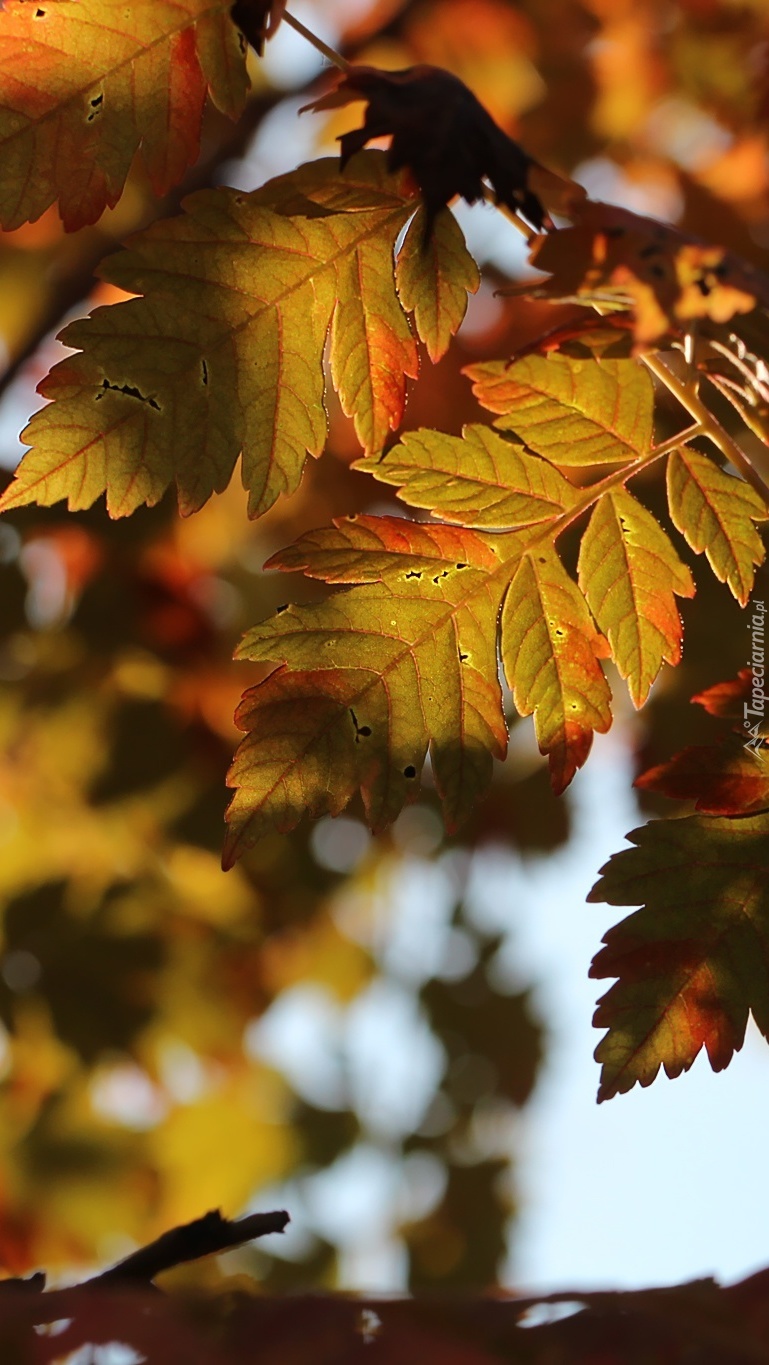 Edytor tapety: Liście jesienne w promieniach słońca