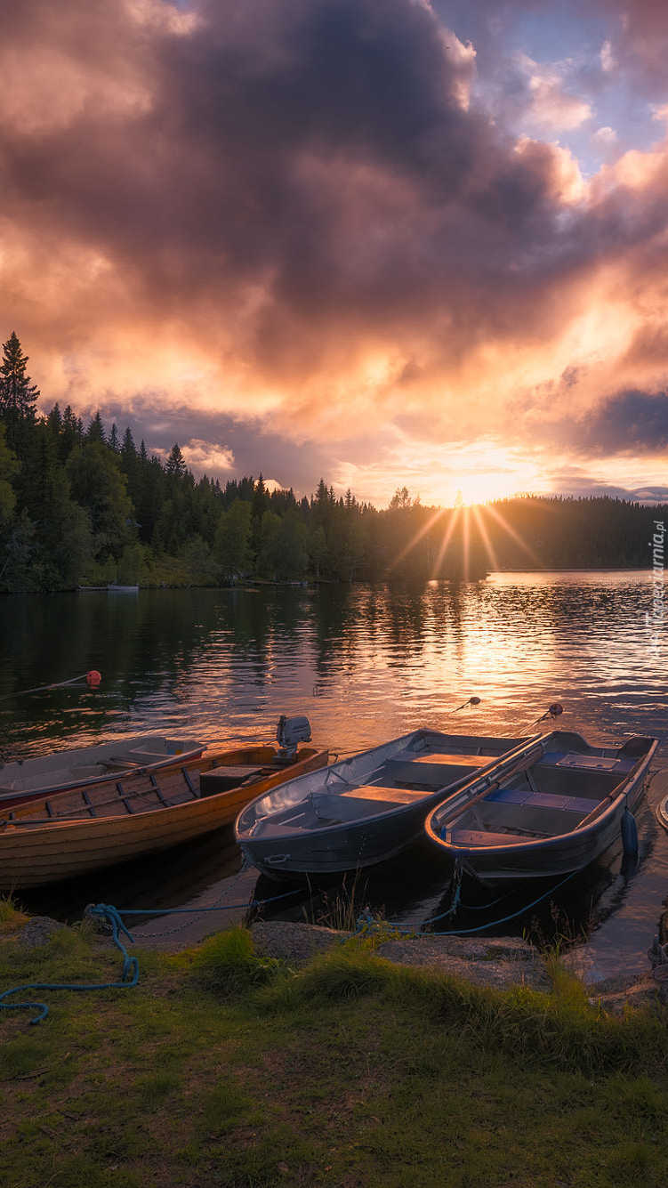 Edytor tapety: Łódki na jeziorze w szeregu