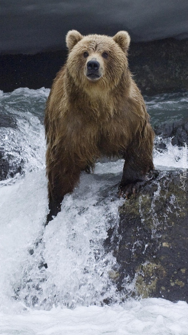 Edytor tapety: Niedźwiedź na rzecznym kamieniu