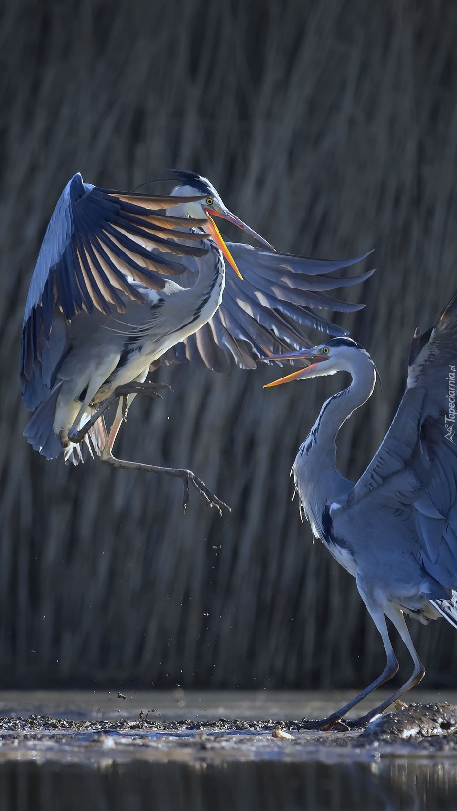 Edytor tapety: Taniec godowy czapli modrej