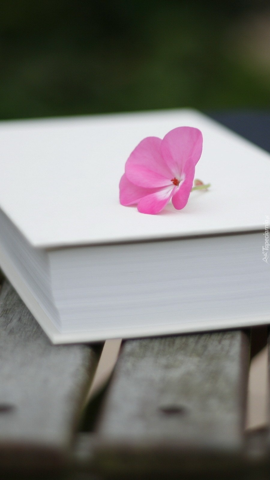 Edytor tapety: Różowy kwiat na książce